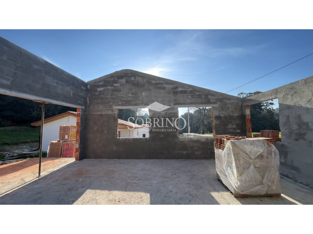 Vivienda unifamiliar de diseño moderno en construcción, ubicada en Piñeres de Pría en el concejo de Llanes sobre una amplia parcela de 879 m².