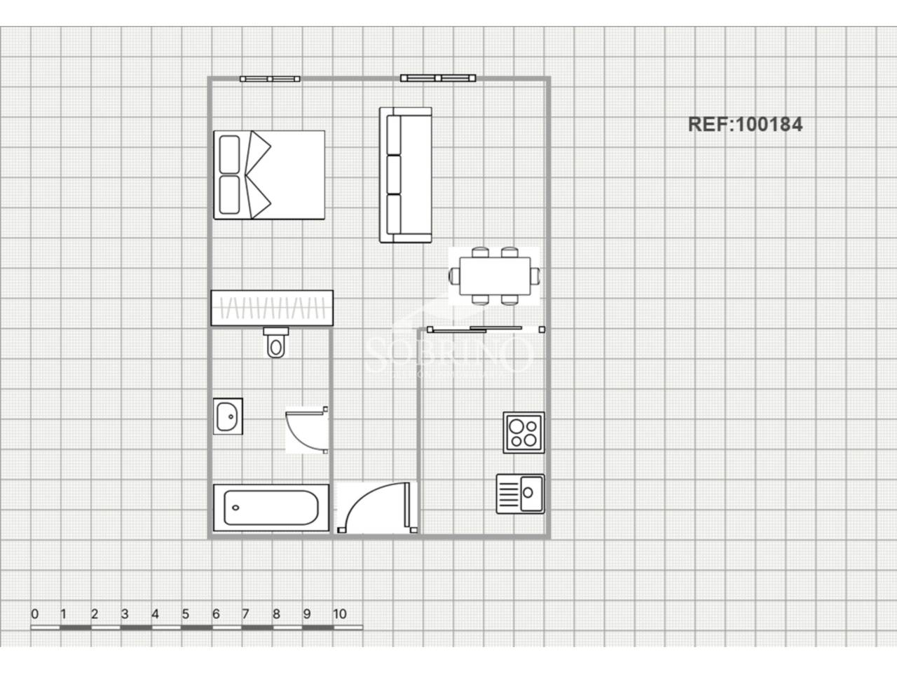 La vivienda ofrece una distribución muy bien aprovechada, con cocina independiente, baño completo y un amplio espacio abierto que te permitirá crear diferentes ambientes: salón, dormitorio y zona de trabajo, todo en un entorno versátil y acogedor.